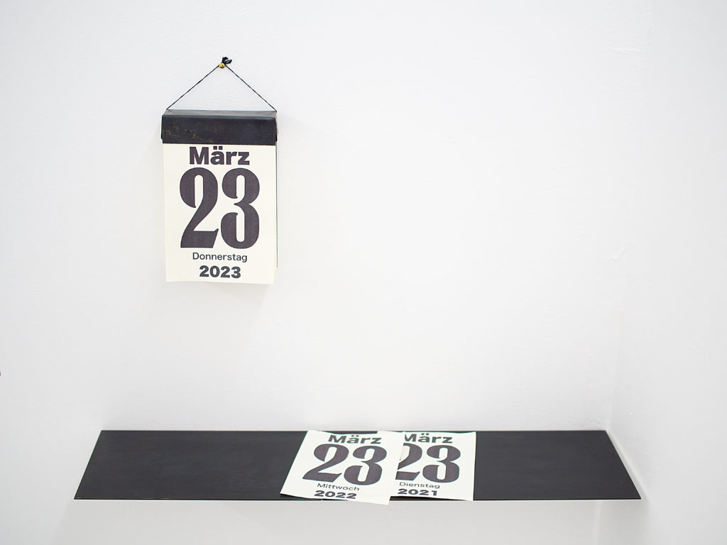 Für die Ausstellung wurde ein Tageskalender zur Feier des Studienabschlusses von Moritz Moll angefertigt. Es handelt sich nicht um einen Kalender für 365 Tage im Jahr, sondern um einen tagesgenauen Kalender nur für den 23. März, der 365 Jahre hat. Dieser Kalender bleibt auch nach seinem Tod bestehen und wird weiterhin das Datum anzeigen.